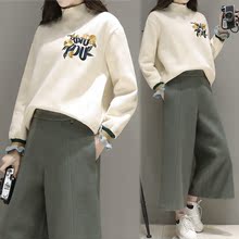 2017春装新款女装韩版刺绣上衣阔腿裤两件套气质名媛时尚套装女潮