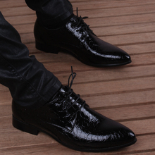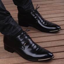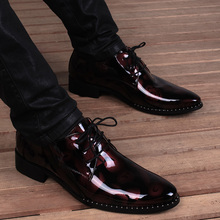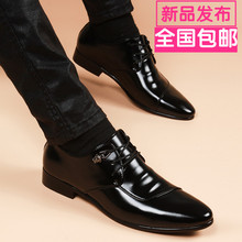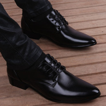 夏季韩版潮男鞋尖头男士商务休闲皮鞋男春季内增高英伦漆皮结婚鞋
