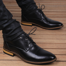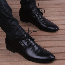 皮鞋男春季新款尖头系带韩版简约时尚男鞋英伦商务休闲内增高皮鞋