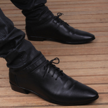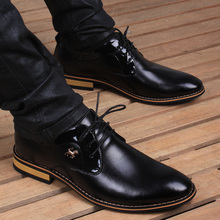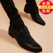 皮鞋男春季新款韩版潮流时尚流行男鞋内增高尖头系带休闲男士皮鞋