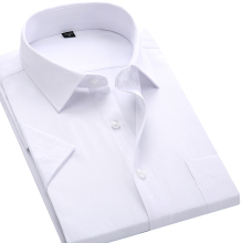 新款修身条纹男士短袖衬衫 正装衬衣商务加大半袖 白色工作服