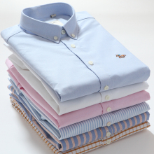 保罗纯棉牛津纺衬衫男士长袖修身春季寸纯色条纹免烫加厚白衬衣潮