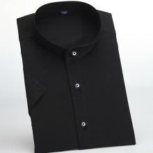 新款男士立领短袖衬衫中华圆领修身夏季修身商务休闲白色衬衣