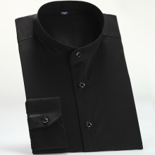 连连红男士立领衬衫 商务衬衣 中华圆青年装中国风圆领纯黑色