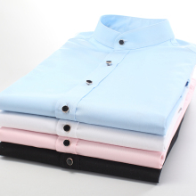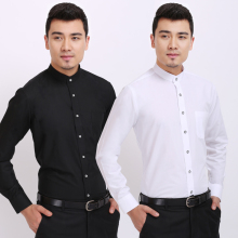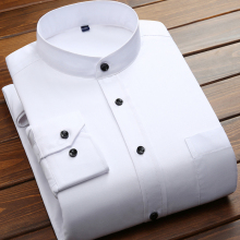 春装新款 男士立领衬衫 圆领免烫长袖商务衬衣中华领纯白色