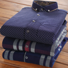 新款男士长袖保暖衬衫 冬装条纹加绒加厚衬衣 商务青年免烫