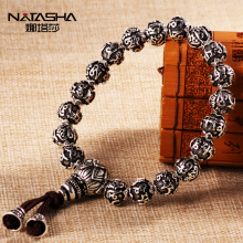 六字真言银手链男99足银经文手串复古泰银饰品手环念珠心经送父亲