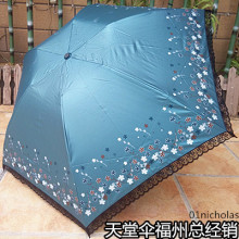 天堂晴雨伞折叠伞三折伞黑胶强轻巧便携女士遮阳伞防紫外线太阳伞