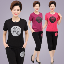 妈妈装夏装套装女40-50岁中年短袖休闲运动服套装薄款大码两件套