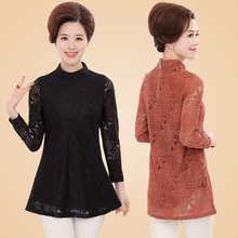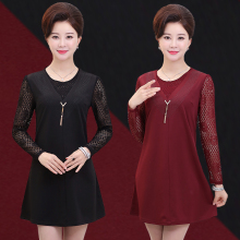 中老年女春季大码打底衫中年人40-50岁夏装中长款蕾丝长袖T恤上衣