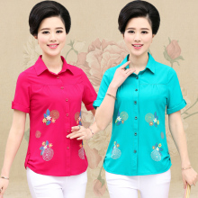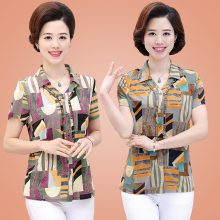 中年女装夏装短袖T恤妈妈装休闲衬衫40-50岁中年大码印花开衫上衣