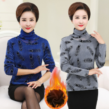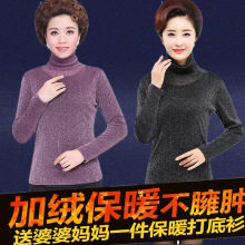 中年秋冬装女长袖针织衫妈妈装加绒打底衫中老年女装加厚保暖内衣