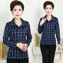 中老年格子衬衫女长袖2017新款妈妈装春装打底衫大码套头宽松衬衣