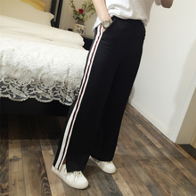 小q小Q 怒推 显瘦超显腿长 高腰条纹拼色开叉休闲阔腿裤长裤 自留