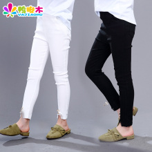 女童铅笔裤春装女大童装打底裤12-15岁韩版10儿童黑白色裤子外穿