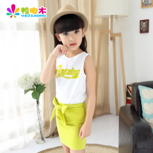 2017新款童装夏款韩版女童夏装套装儿童套裙夏季短袖T恤半身裙子