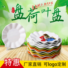 彩色盘子密胺盘菜盘汤盘碟子圆形荷叶盘外贸家用酒店深盘盖浇饭盘