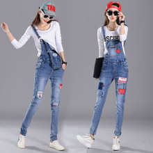 2017秋季新款时尚减龄牛仔背带裤女韩版吊带长裤学生小脚连体裤潮