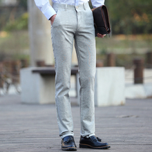 莱恩堡裤子男修身商务亚麻薄款男裤2017纯夏季新款休闲裤微弹薄