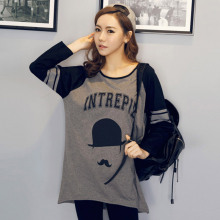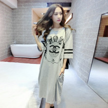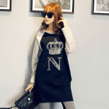 包邮韩版春秋装宽松大码长款时尚皇冠休闲圆领长袖t体恤裙女纯棉