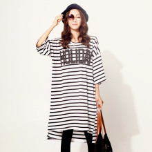 包邮韩版夏装宽松大码长款条纹百搭休闲圆领短袖t体恤裙女纯棉