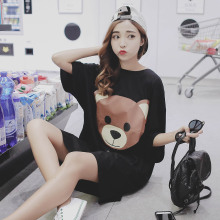 包邮韩版夏季超宽松大码长款小熊休闲蝙蝠袖短袖t体恤裙女装纯棉