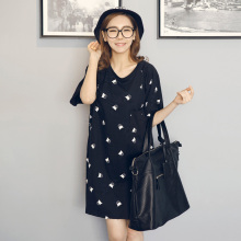 包邮韩版夏季宽松大码长款小蝙蝠侠休闲圆领短袖t体恤裙女装纯棉