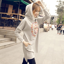 包邮|韩版春秋季宽松大码长款卡通连帽套头休闲卫衣裙女装纯棉