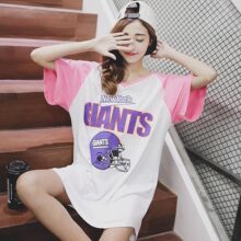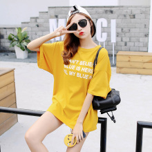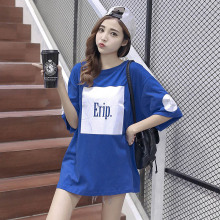 包邮韩版夏季宽松大码中长款时尚休闲字母圆领短袖T体恤女装纯棉