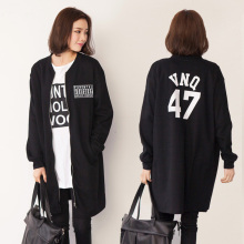 包邮韩版春秋装宽松大码长款徽标贴布bf风休闲拉链风衣外套女纯棉