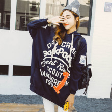 包邮|韩版春秋装宽松大码长款时尚休闲贴布袖圆领加绒卫衣女纯棉