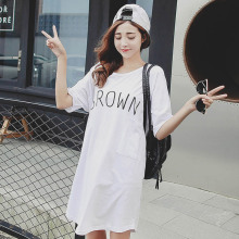 包邮韩版夏季宽松大码长款时尚简约百搭圆领短袖t体恤裙女装纯棉