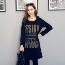 包邮|韩版春秋季宽松大码超长款字母时尚圆领长袖t体恤裙女装纯棉