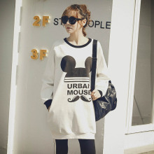 包邮|韩版春秋装宽松大码长款米奇运动休闲圆领加绒卫衣裙女纯棉