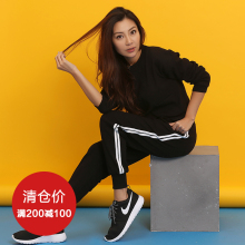 运动套装女春秋2017新款潮韩版卫衣两件套两条杠运动服跑步黑色