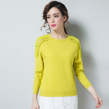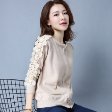 2017春装新款长袖套头毛衣女宽松圆领打底衫钩花镂空薄针织衫
