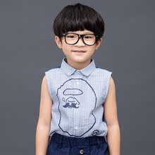 童装男童卡通无袖衬衫儿童韩版动漫条纹上衣2017新款夏1625079