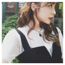 雪纺短袖女夏2017新款t恤透视镂空打底衫韩版蕾丝bf中袖圆领上衣