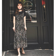 吊带连衣裙女夏雪纺印花2017新款性感碎花宽松显瘦中长款V领a字裙