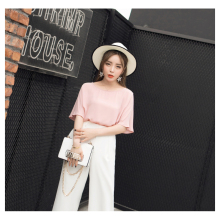 雪纺T恤女夏2017新款喇叭袖纯色短袖白色宽松大码半袖短款女上衣