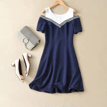 别致造型 小露美肩 假两件撞色短袖显瘦连衣裙 米虫爱吃米