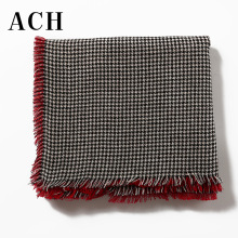 千鸟格子围巾女秋冬季红黑色双层双面澳毛纯羊毛保暖披肩两用正品