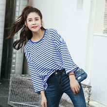 秋季新款女装学院风宽松条纹上衣打底衫韩版百搭长袖T恤学生