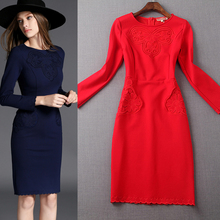 2017新款秋冬季修身显瘦长袖新娘回门装公司年会晚礼服红色连衣裙