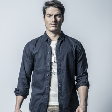 AK男装 春季新款军事复古小领扭扣简洁款长袖衬衫