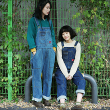 octopus-me 设计师款 古着感日系搭配裤子 百搭宽松牛仔背带裤