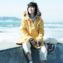 octopus-me 原创设计 春季新品日系复古小清新芒果黄宽松风衣外套