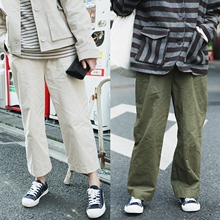octopus-me 原创设计 春夏款工装风九分裤 帆布休闲宽松百搭长裤