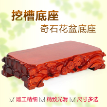 红木奇石底座摆件 花瓶花盆石头木托 大号实木质长方形底座可挖槽