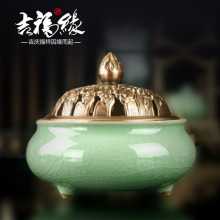 吉福缘龙泉青瓷香薰炉陶瓷手工仿古镀纯铜薰香线香檀香沉香香炉